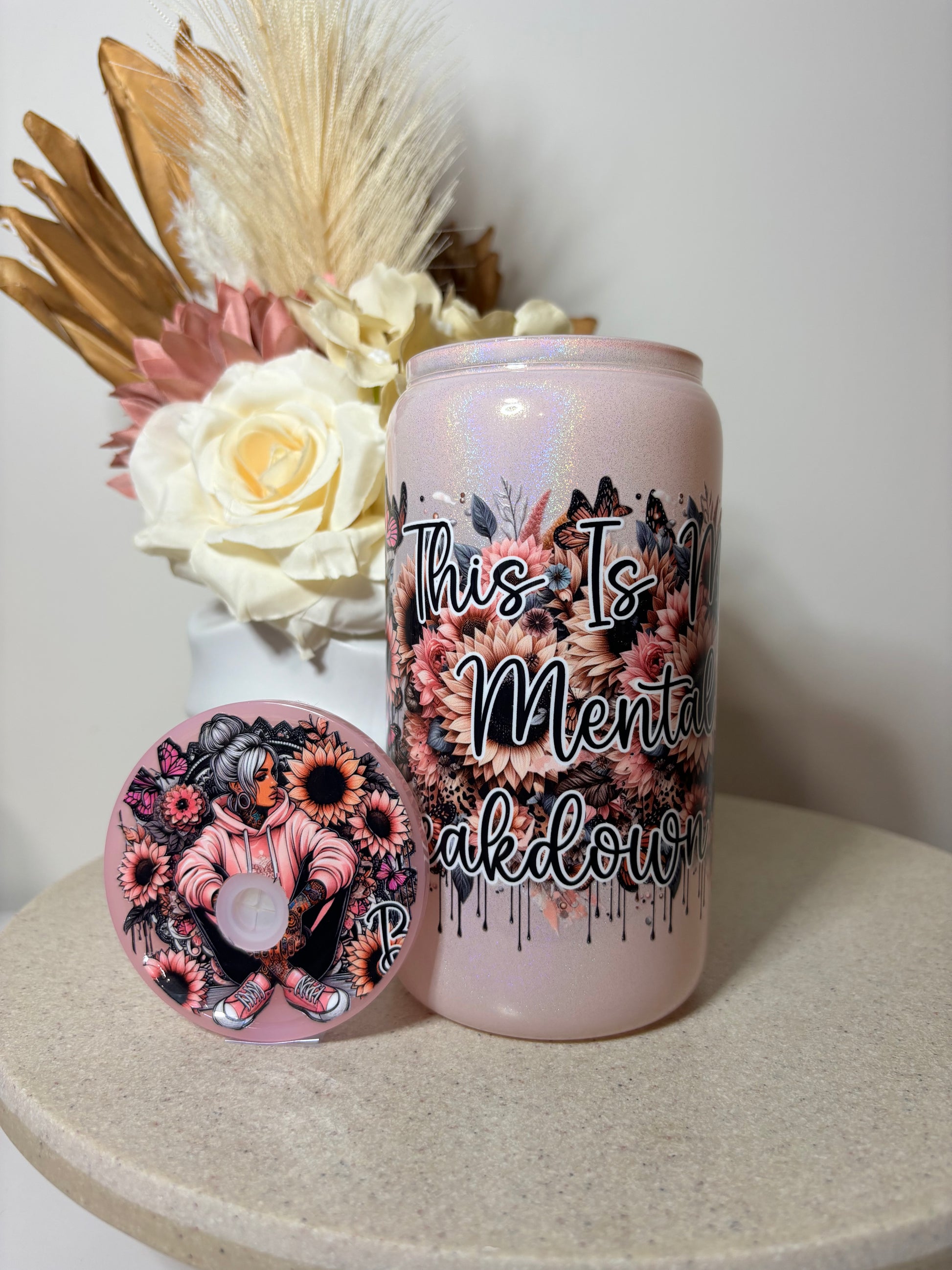 Mental Breakdown Pink Shimmer Glass Tumbler